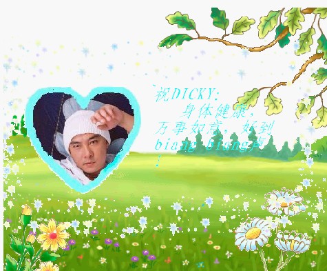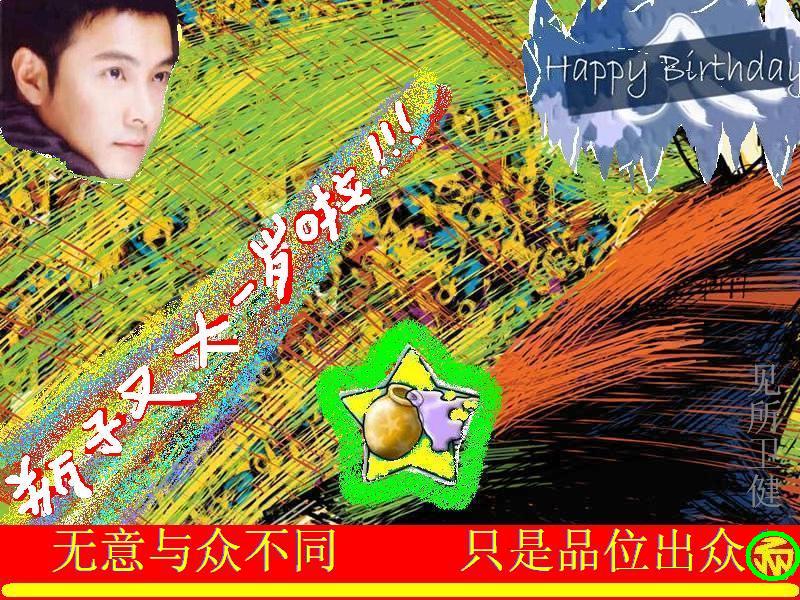 <温情版>唱完生日歌,就吹蜡烛吧!对着灿莹莹的烛光许个什么愿?身体健康、万事如意、财源滚滚、收视长虹、唱片大卖种种之类吗?可以代你许个愿吗?就祝你在新年、新岁“做自己想做的事”好吗!相识真好、相知真好。带给我那么多笑与泪的你,带给我那么多智慧与宽容的你,带给我那么多坚强与感动的你;此时此刻,我竟无语,太多感情在心中涌动,却说不出来了……大家都是幸福的人,你得到太多人的拥戴,而我们就在你踏出路上与你随行,眼前风景甚丰,每每都似星般闪耀。初识的<真真假假>月神侠中,那么青春帅气活力四射,还略带青涩,却让人着迷;一直可惜是时隔太久,当<身体健康>开启密封的思绪时,才发觉那种熟识竟带着沉年的香,经年的记忆从没遗露过。原来潜意识中一直在对你多加留心,只是自己没查觉罢了;当年那个毛头帅小伙以羽化成眼前这成熟内敛、恢谐幽默且张弛有度的成年男子了。心头一惊,流淌在血液中的全是感动。记得那个SARS的冬季吗!我先见之明的买了<02悟空>,没几天就被隔离在家,本以做好‘悟空片下死,做鬼也开心’却成全我深陷于你的精神世界,于是,我有了一个异于常人的SARS经历。电脑连网后的我贪婪的吸取着你的所有过往,这更推波助澜了我的迷恋。曾嫉妒着那么多人在风雨飘摇的日子里与你并肩同行;而我,却为只有在这繁华胜景之时分得一份荣耀而自感惭愧了。听着你对自己传奇般经历的轻描淡写,一带而过,在被彻底折服的同时,心中还微微泛起一种莫名的不公感,多么幸运可以分享你人生中每个过程,而我却对自己的太多密口不言于人前。哈,那么就让我的自私映称你的磊落吧。今夜无眠,为你守岁,也为你守岁;一份份真心的祈祷相信总会有神明听的到,我相信好人好运。听…无法暗讷内心的欢愉地钟声终于跳跃出来,新年新岁,一切随,一切顺心!很老土的再诚心多说一遍:生日快乐!!<争春版>“凉风有信,秋月无边,亏我思D的情绪好比度日如年”哎!Dicky哥呢,小宝祝你:生日快乐,福如海,寿比山,开尽快乐每一天。吃的饱,银装满,身体事业均康健……我当是哪位呢,原来是小宝兄弟你呀,除鳌拜你跟我夺头功也就算了,反正自家人好说话,可这拜寿你怎么也要抢头筹呢!我怎么说也是个博学鸿词的状元爷来的,这话都被你说尽了,我也为有绍介一下今晚的菜色啦,不过,最最重要的是要用上咱们戴家窑的玉用瓷器才叫体面嘛御用供奉嘛呵呵,老远就听这儿热闹,不用想知道是两位名嘴啦。万三我是实在人说实在话,今晚的寿酒包由我包办,不过要多加一份盖不外传的‘万三蹄’来尝尝。‘真是财大气粗,但可不要贵人多忘事,算名嘴,怎么能少了我神神气气的不懂老师,而然我也给Dicky哥带来了祝幸小节目呢,怎么样,偶这七彩衣像只灵鸟吧,一会儿再带大家看祥云’‘好你个小子,竟也编排起我的不是了,我与你朱老伯可是八拜之交,你又是你爸的亲儿子,还不快快给你叔叔我,和你Dicky哥叩个响头,表表你的孝心之后,再贴你的毛,变你的鸟’不懂一指天边。‘快看,真有祥云,还飞来只彩鸟呢’霎时,甘林降临‘还真是遇水则发,Dicky哥生日就是不同,这雨还真甜’‘YO!蟠桃雨不用怕!!’自从上次给乌龟快洗过蟠桃浴,他是出落的越发帅气,英俊;现在蟠桃系列品早就名满天庭,这次Dicky摆寿,老孙特意带此下来,一来祝寿,二来也可以有病治病,无病强身嘛;噢对了,这儿还有上次蟠桃换金丹得来的一斤各式仙丹,老孙以是金钢不坏之身,留来无用,就给咱们的寿星佬当零食磨磨牙吧。各位先聊着,我和Dicky探讨一个关于兰花的问题。哎哟喂呀叭叭啦,Dicky的亲朋遍天下,快看看,这个潇洒倜傥的交警阿Sir不正是咱们醒目派掌门人尚天堂,堂堂嘛。哎呀堂堂真是好久不见,除了Dicky看来也没人有面子请您大架了吧‘架子到不大,但是多年不见,真是太想小健了,看看,这蛋糕PP吧,可是自己设计的,小健呢,我可真想他,要好好亲亲他,他人呢,不会把我忘了吧’‘什么蛋糕呀,谬谬知道的,过年是要吃汤元的,蛋糕不是汤元的。’‘真是傻子’‘傻子你叫谁呀’‘行了弟弟,过年是不错了,可也是咱自家人的生日呀,为什么怎么教你都没用呢’‘你聪明吗,生日不是吃寿面吗,怎么会成蛋糕呢,一个长的,一个圆的,这你都分不开吗,要我说,你才是笨呢。在这里罗嗦什么,还不跟我去敬茶去。就祝生日快乐好不好,新年快乐,身体健康,万事如意,还有一点儿最重要,就是早点娶媳妇儿好不好’‘人气还真旺呢!我天不怕,地不怕就怕没架打的方世玉打人见多了,可是自己跟自己吵嘴的还是头一回见到,啊这个叫谬谬吧,自己捣鼓什么呢,我帮你想了个戏码,一会儿去演个双簧也不错。我还带来一个小兄弟,来擦苏!擦苏呢!!快过来说说咱们的准备的节目吧’‘舞狮!这是我师徒无影脚和梅花庄步法的全新组合。那叫一个惊,那叫一个奇,那叫一个…一会儿自己看吧,直定气氛热闹的很’‘哎,怎么没见咱们大主角呢,躲哪儿睡大头觉了吗,花姐也说好想他,还煮了红鸡蛋给他呢’各位自己,自己好,今天是个多喜临门有大好日子。现在就有请人见人爱,车见车载,啤酒见到打开盖的Dicky出场,大家一同为自己的自己来祝贺吧快,灵鸟飞起来,狮子舞起来,蜡烛点起来,鞭炮放起来,好酒好菜摆上来,最重要的是,预备~唱恭祝你福寿与天齐,庆贺你生辰快乐,年年都有今日,岁岁都有今朝,恭喜你,恭喜你……